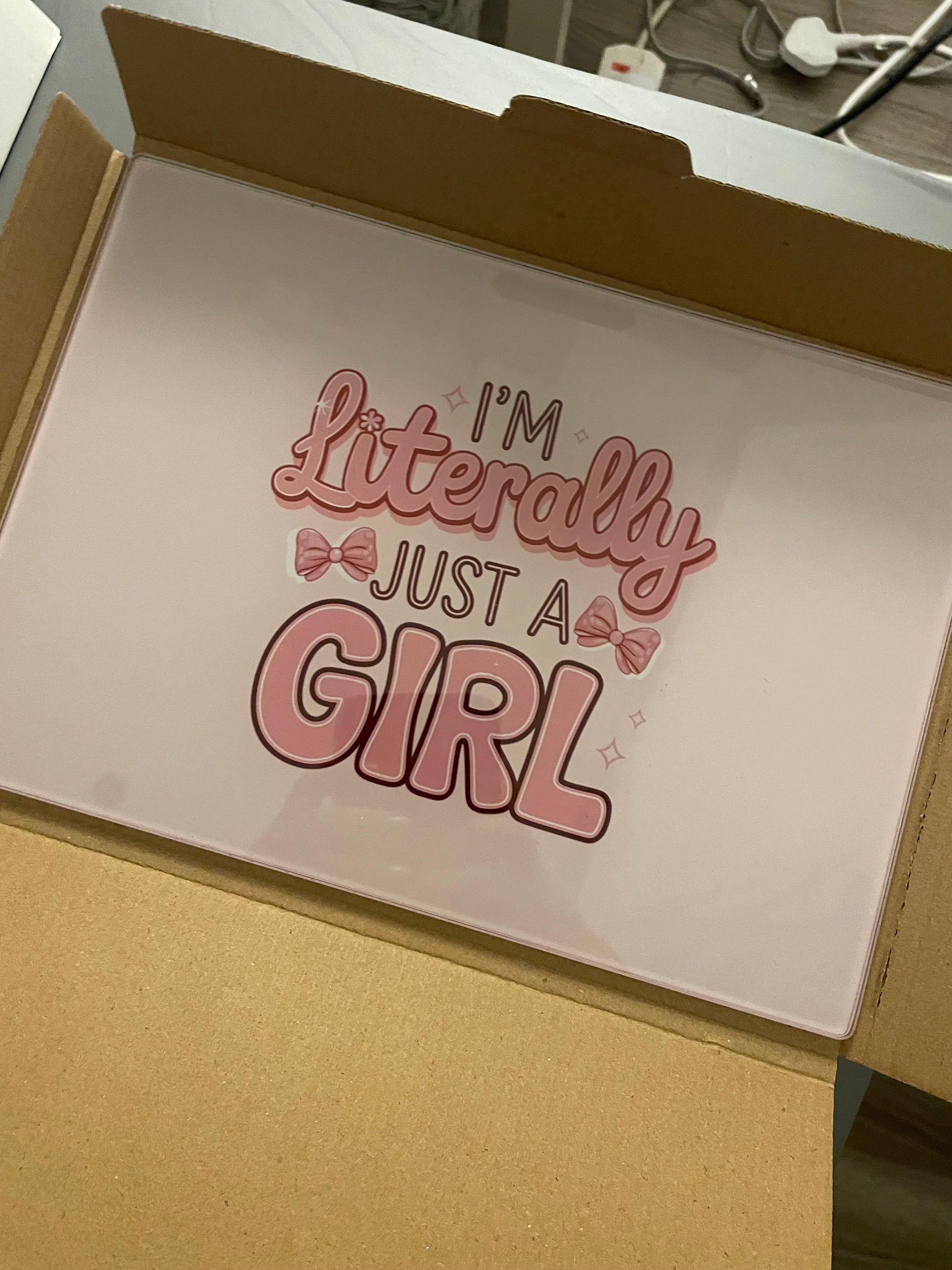 Say goodbye to burnt marks on your furniture with our Literally a Girl Glass Straightener Board! This a4 glass board in pink is the perfect gift for teens who love using heat straighteners and tongs. Keep your space clean and stylish with this practical and chic addition.